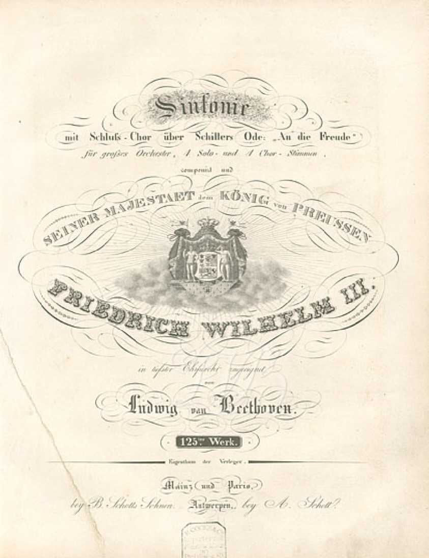 La Sinfonía n.º 9,作品。 125 (a veces conocida simplemente como “el Coral”), es la última sinfonía completa de Ludwig van Beethoven. 1824 年终结,交响曲是西方剧目中的交响曲。考虑到贝多芬的最佳作品是普遍存在的,它是在交响乐中使用声音的合成器。一首由独唱和协奏曲组成的最后的乐章,由奥达和弗里德里希·席勒的阿莱格里亚组成,并由合成器实现。这些交响乐是世界各地的交响乐的诠释。 2002年,贝多芬的作品被保存在柏林国立图书馆,并被收录在联合国世界遗产名录中,并与首部音乐作品合作并获得荣誉。
