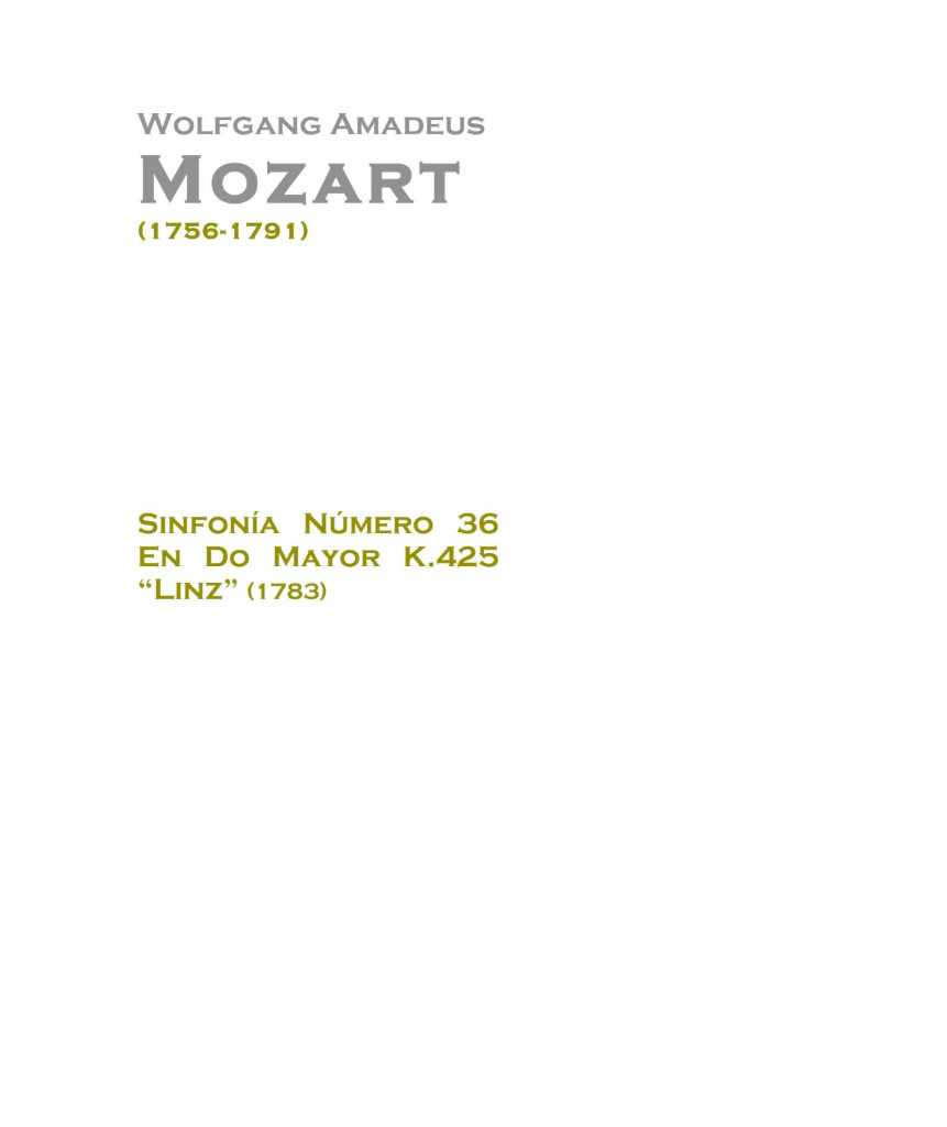 C大调第36号交响曲(K.425,又称林茨交响曲)由沃尔夫冈·阿马德乌斯·莫扎特于1783年末与妻子从萨尔茨堡返回维也纳途中,在奥地利小镇林茨短暂停留期间创作。这部交响曲耗时四天完成,以配合当地伯爵在得知莫扎特夫妇抵达林茨后宣布将举办音乐会的消息。慢乐章带有西西里风格和节奏,这在莫扎特早期交响曲中并不常见(仅在《巴黎》的慢乐章之一中使用),但在后期作品中频繁出现,例如第38号和第40号。作品的亲笔总谱已失传。该作品由两支双簧管、两支巴松管、两支圆号、两支小号、定音鼓和弦乐组成。